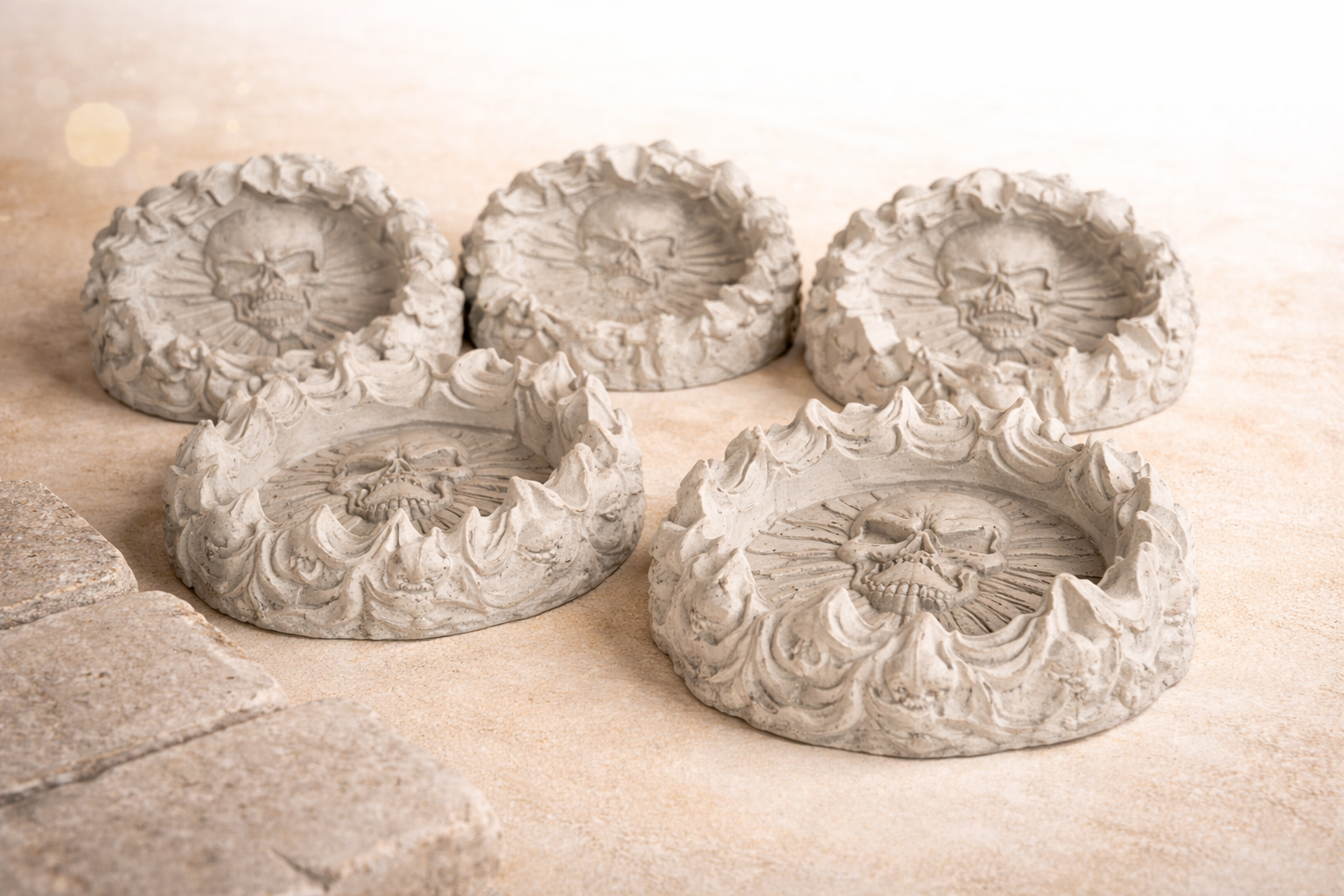 Стильная пепельница из гипса ручной работы с выразительным дизайном черепов. Прочный материал и детализированный рельеф придают изделию брутальный характер и уникальность. Идеально подойдёт как для использования, так и в качестве оригинального элемента декора.